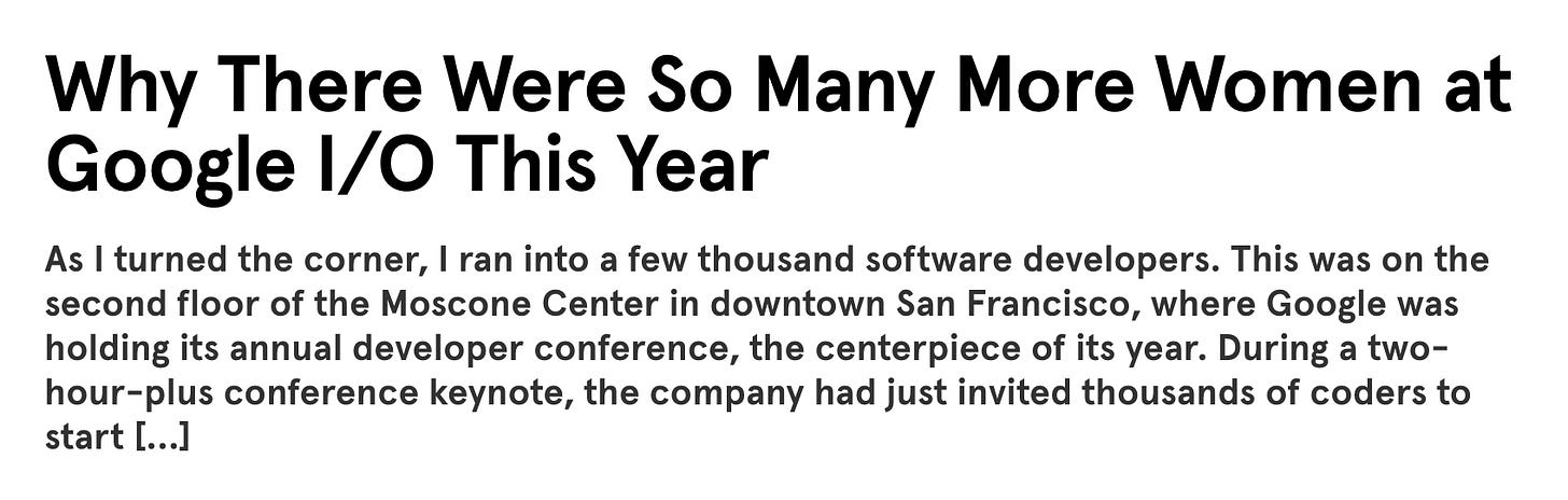 Si alguna vez tuvieron la suerte de asistir a una conferencia sobre tecnología seguramente notaron algo: es uno de los pocos espacios en el mundo donde el baño de mujeres no tiene fila. Con esa idea quiero empezar este triste relato.